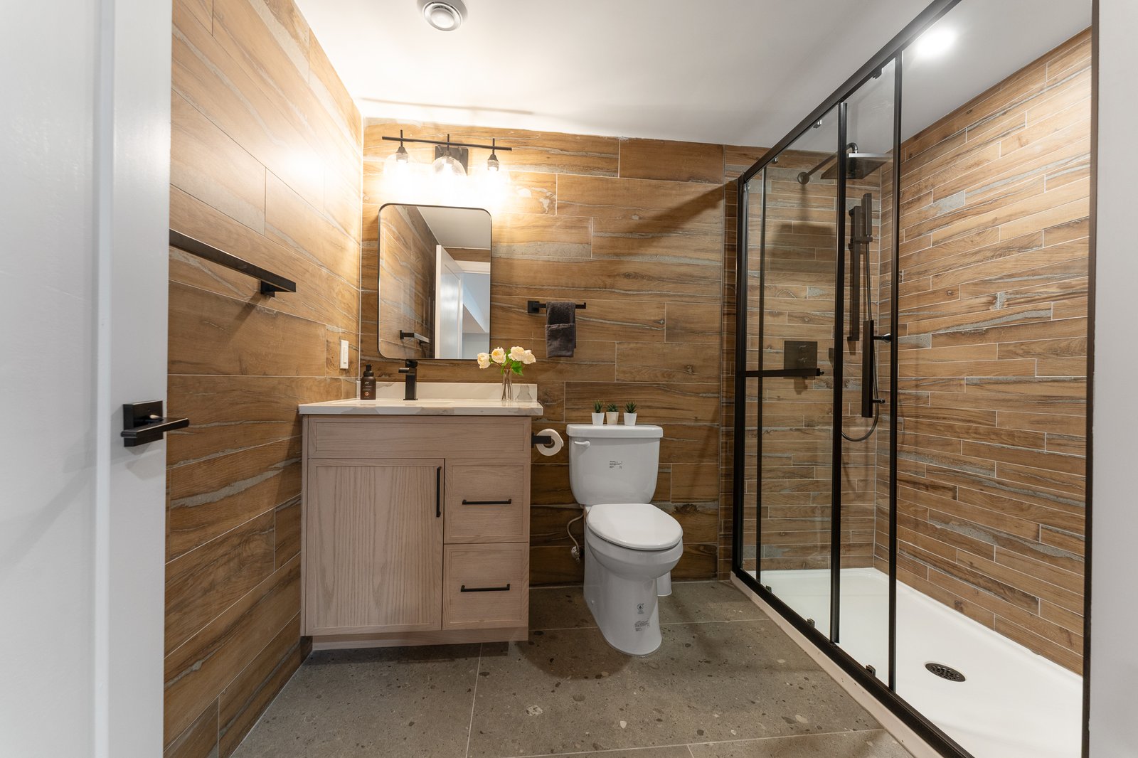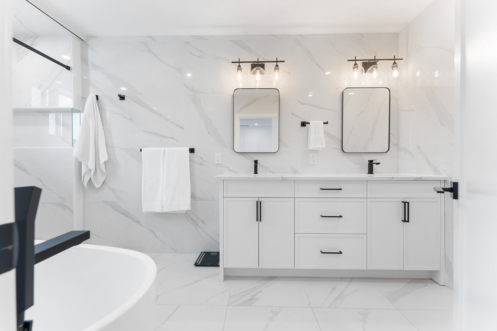 A tranquil upper-level sanctuary featuring a spa-inspired ensuite with dual vanities, a deep soaking tub, and a glass-enclosed walk-in shower. This suite also offers an expansive closet and an additional versatile space – ready to be customized to suit your personal needs.